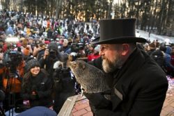 PUNXSUTAWNEY, Pa. (AP) — Punxsutawney Phil’s handlers say he’s seen his shadow and is therefore predicting six more weeks of winter weather. Phil’s annual prediction occurred shortly after dawn Monday outside his tree stump in Gobbler’s Knob. The Pennsylvania festivities are among the many Groundhog Day rituals around the U.S. and beyond. Groundhog Day on Feb. 2 comes at the midpoint between the winter solstice and the spring equinox. The tradition has roots in European agricultural folklore. Despite its silliness, the event remains a beloved tradition. Phil’s accuracy is debated, with federal weather officials saying he’s been right only about 40% of the time.