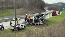 A vehicle fire disrupted traffic on the Pennsylvania Turnpike in Westmoreland County. Emergency crews were called to mile marker 76.4 of westbound I-76 near New Stanton at 4:46 p.m. A Westmoreland County 911 supervisor said a tractor-trailer was reportedly carrying shell casings. The severely burned trailer was on the highway’s shoulder but no injuries were reported. The right lane of westbound I-76 was temporarily blocked while crews removed the trailer.