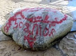 PLYMOUTH, Mass. (AP) – Police are investigating a vandalism spree that left the famous Plymouth Rock covered in graffiti. Town officials say workers had removed the red spray paint covering the rock in Plymouth, Massachusetts, by late Monday morning. Police say vandals also targeted a seashell-shaped sign celebrating the upcoming 400th anniversary of the 1620 Mayflower landing, the Pilgrim Maiden statue and the National Monument To The Forefathers. It was not immediately clear if this graffiti incident had any connection to the anniversary celebration. No arrests had been made Monday afternoon.