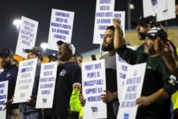 PHILADELPHIA (AP) — Dockworkers at ports from Maine to Texas have started walking picket lines in a strike over wages and automation that could reignite inflation and cause shortages of goods if it goes on more than a few weeks. The contract between the ports and about 45,000 members of the International Longshoremen’s Association expired at midnight, and even though progress was reported in talks on Monday, the workers went on strike early Tuesday. The strike is affecting 36 ports. The U.S. Maritime Alliance, which represents the ports, said Monday evening that both sides had moved off of their previous wage offers, but when picket lines went up just after midnight, it was apparent there was no deal.