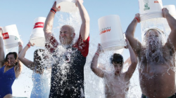 GLOUCESTER, Mass. (AP) — Hundreds of people plunged into the chilly ocean at a Massachusetts beach on Saturday to honor Peter Frates, the former college baseball player whose battle with Lou Gehrig’s disease helped spread the ALS ice bucket challenge. About 1,000 people showed up for the final “Plunge for Pete” at Good Harbor Beach in Gloucester, and more than half of those braved the frigid waters on what would have been Frates’ 35th birthday. The event, in its eighth year, raised money for the Pete Frates #3 Fund, which helped pay for Frates’ medical bills. The former Boston College baseball player, who lived in Beverly, a suburb north of Boston, died Dec. 9 after a seven-year battle with amyotrophic lateral sclerosis. The family has accumulated roughly $500,000 in debt for their son’s medical care, Pete’s father, John Frates said, and the final fundraiser will hopefully help close the gap. The family will continue to raise money for the separate Peter Frates Family Foundation, which helps other ALS patients cover home health care costs, he said.