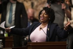 HARRISBURG, Pa. (AP) — Philadelphia state Rep. Joanna McClinton is the first woman to serve as speaker of the Pennsylvania House. She ascended to the chamber’s top position Tuesday on the strength of a fresh one-vote Democratic majority. The leadership reshuffling came nearly two months after Rep. Mark Rozzi, a Berks County Democrat, became the surprise choice for speaker. Democrats flipped a net of 12 seats in November to retake majority control after more than a decade, but their margin didn’t become effective until their candidates won three special elections earlier this month. Rozzi stepped down shortly before the 102-to-99 vote for McClinton. The 40-year-old McClinton grew up in southwest Philadelphia, where she still lives.