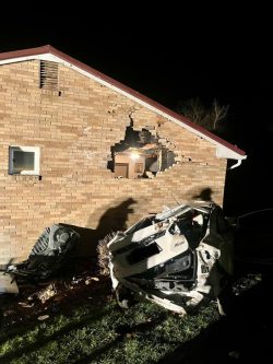 State Police say charges, including driving under the influence, are pending in connection with a violent crash late Monday night in South Franklin Township. 31 year old Evan Knopp of Washington was flown by medical helicopter after his vehicle went into a home in the 500-block of Lagonda Road just after 10 p.m. State Police say he was traveling westbound at a high rate of speed and left the roadway, struck an embankment over overturned multiple times before hitting the brick wall on the east side of a home before coming to rest. Troopers say Knopp suffered serious injuries in the crash. There is no word on his condition. No one inside the home was injured. State Police say they are awaiting results of blood test before charges are filed. (Photo: Morris Township VFD FB page)