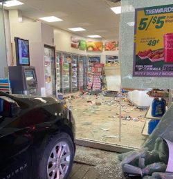 WASHINGTON, Pa. — Crews responded to a vehicle into a structure call early Saturday morning in the City of Washington. According to reports, a car went through the glass door and windows of the BP gas station around 1:30 a.m. on the 1300 block of West Chestnut Street. Reports say there were multiple occupants in the vehicle, but no entrapment. There was also no reported structural damage. The Pennsylvania State Police were on scene and are investigating. There was no word on injuries at this time. (Photo: Facebook)