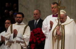 VATICAN CITY (AP) — In the splendor of St. Peter’s Basilica, Pope Francis was presiding over Christmas Eve Mass. During his homily Saturday evening, the pontiff hailed Jesus’ birth in a stable and admonished people against being “ravenous” for power and wealth. He decried war, poverty, injustice and greedy consumerism. Francis encouraged people not to let Christmas pass without doing something good. The pope said there was a “danger” that people forget the real meaning of the holiday. Some 7,000 Romans, tourists and pilgrims attended the Mass. On Sunday, Francis was set to deliver a Christmas blessing and read a message traditionally about the world’s trouble spots from the basilica’s balcony overlooking St. Peter’s Square.