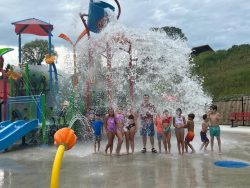 Peters Township residents will now be able to enjoy themselves on a hot day at a splash pad that has been in the works for a number of years. Township officials and staff gave the splash pad in Rolling Hills Park a workout as they held a ribbon cutting event Thursday evening. Frank Kosir made sure that the bucket portion of the splash pad worked as he got drenched with several of the youngest of his constituents. He called it a great day to deliver the facility to the residents. Dave Brooks is the Director of Parks and Recreation for the township and he said that what the township now has is one more venue to make sure that Peters Township has anything residents want for recreation and not have to search for it elsewhere. Also on hand was state senator Camera Bartolotta. State representative Natalie Mihalek and Bartolotta were instrumental in delivering a $3.2 million grant to Peters Township to help offset the cost of the facility. Township Manager Paul Lauer called the splash pad something that cannot be found anywhere else in southwestern Pennsylvania. The facility also has outdoor picnic areas, an indoor party room available for rent and restrooms. The facility will officially open on August 4 and will remain open daily until September 1. The hours of operation are from 11-7. The cost is $2.50 per person for residents, $5.00 per person for non-residents. Annual passes for 4 people are available for $25, non-residents pay $50.