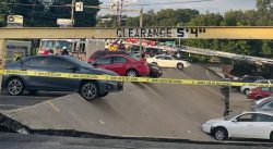 PENN HILLS, Pa. — (WPXI) – The parking lot looks like it broke in half right in front of a Penn Hills apartment building, leaving over a dozen cars in a giant hole and nearly 50 people displaced.“It looked like it split straight down the middle in sort of a V-formation the whole 50 yards,” said Ronald Como, Penn Hills police chief. Como says the Frankstown Road parking lot dropped between 15 to 20 feet shortly before 6:30 p.m. on Tuesday. “When emergency vehicles responded, there was a female in a car,” Como said. That person was Alex Bowens. “I was backing up to park and I heard a noise,” she said. “I paused for a minute because I thought it was loud thunder, or I ran over a grate that was messed up” In a split second, Bowens and her car fell. “Stuff was going into my car and eyes,” she said. Bowens got out with the help of a police office and is doing OK, but her car was not so lucky. Now Bowens and nearly 50 others are displaced “What am I going to do without my house?,” she asked. “At least I still have a job.” The structural integrity of the building will also be checked before anyone is allowed back in, Como doesn’t have a timeline on how long that will take. The cause of the collapse is also under investigation. (PHOTO: WPXI)