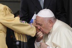MASKWACIS, Alberta (AP) – Pope Francis has apologized for the Catholic Church’s cooperation with Canada’s “catastrophic” policy of Indigenous residential schools. The pontiff says the forced assimilation of Native peoples into Christian society destroyed their cultures, severed their families and marginalized generations in ways still being felt today. Francis spoke Monday near the site of the former Ermineskin Indian Residential School, on lands of four Cree nations south of Edmonton, Alberta. He said, “I humbly beg forgiveness for the evil committed by so many Christians against the Indigenous peoples.” The long-awaited apology opens Francis’ week long “penitential pilgrimage” to Canada, which is meant to help the church on its path of reconciliation with Indigenous peoples and help victims heal.