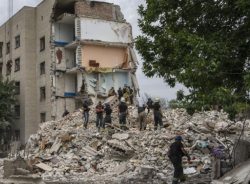 KYIV, Ukraine (AP) — At least 15 people were killed when a Russian rocket hit an apartment building in the eastern Ukraine town of Chasiv Yar and more than 20 people may still be trapped in the rubble, officials said Sunday. The Saturday night rocket assault is the latest in a recent burst of high-casualty attacks on civilian structures. At least 19 people died when a Russian missile hit a shopping mall in the city of Kremenchuk in late June and 21 people were killed when an apartment building and recreation area came under rocket fire in the southern Odesa region this month. Russia has repeatedly claimed that it is hitting only targets of military value in the war. There was no comment on Chasiv Yar at a Russian Defense Ministry briefing on Sunday. Pavlo Kyrylenko, governor of the Donetsk region that includes Chasiv Yar, said the town of of about 12,000 was hit by Uragan rockets, which are fired from truck-borne systems. The Ukrainian emergency services later said the death toll had risen to 15 and that an estimated two dozen people were under the wreckage. Rescuers made voice contact with at least three people trapped in the rubble, it said. Chasiv Yar is about 20 kilometers (12 miles) southeast of Kramatorsk, a city that is expected to be a major target of Russian forces as they grind westward.