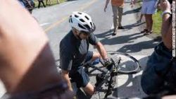 REHOBOTH BEACH, Del. (AP) – President Joe Biden fell when he tried to get off his bike at the end of a ride Saturday at Cape Henlopen State Park near his beach home in Delaware, but said he wasn’t hurt. “I’m good,” he told reporters after U.S. Secret Service Agents quickly helped him up. He said he got his foot caught in the toe cages. The 79-year-old Biden and first lady Jill Biden were wrapping up a morning ride when the president decided to pedal over to a crowd of well-wishers standing by the bike trail. Biden tumbled when he tried to dismount. The president quickly collected himself and spent several minutes chatting with people who had gathered to watch him bike.