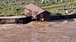 HELENA, Mont. (AP) – Communities bordering Yellowstone National Park are isolated and tourists stranded after record floodwaters knocked out roads and bridges in Wyoming and Montana and forced the closure of all entrances to the park. There were no immediate reports of injuries and water levels were dropping Tuesday but it was unclear when the park could reopen. National Park Service photos showed a landslide, washed-out bridges and roads undercut by floodwaters. Roads through the park’s northern entrance are washed out and hundreds of tourists remained stuck in and around the town of Gardiner. The flooding triggered evacuations in the park and several Montana towns. (Photo: ABC News)