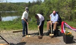North Franklin Township Supervisors broke ground on Thursday for their new Municipal Complex. The proposed $2.5 million facility will be 7400 square feet and will house not only all municipal offices it will offer township residents a community center to hold private gatherings. The design calls for an 1800 square foot conference room that can be divided into two smaller rooms of 1200 and 600 square feet based on client need. To accommodate events with food, the center will have a warming kitchen. The building is located near the township’s Waterside Park that is behind the Pennsylvania American Water storage facility on Franklin Farms Road. Supervisor Chairman Bob Sabot says the project has been in the works for 20 years. He states that the project is being built without raising taxes. The project is expected to be completed around Labor Day of 2023.