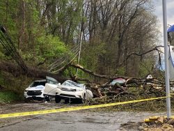 One man is dead after a tree fell onto several cars at a Sunoco Station in Upper St. Clair Tuesday evening. The gas station is located on the corner of McMurray Road and Bethel Church Road and authorities say the cars had been stopped at a red light when the tree came down. The man was taken to an area hospital in critical condition. He later died. Power lines were down in the area and the Sunoco’s roof was ripped off. His wife and a family of six in the other car were not injured. (Photo: WPXI)