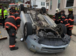 CHARLEROI, Pa. — Mon Valley fire crews arrived to the scene of a three-car accident Saturday evening in the borough. According to officials, a driver hit two parked cars before flipping the vehicle and fleeing the scene at the corner of 3rd Street and Fallowfield Avenue. Charleroi Fire was assisted on scene by the Charleroi Regional Police Department, Mon Valley EMS and Bujanowski Towing. No suspects have been identified at this time. (Photo: Charleroi Fire Department Facebook Page)