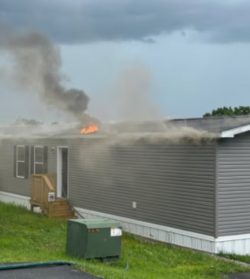 BENTLEYVILLE, Pa. — Flames damaged a brand-new mobile home in Bentleyville on Sunday. Bentleyville Fire-Rescue said they were called to the 300 block of Beallsville Road at 2:23 p.m. for a reported fire. Flames and smoke were spreading on the roof of a mobile home. Firefighters said they believe the fire began after the structure was hit by lightning. No injuries were reported. The mobile home was brand new and no one had moved in yet. (PHOTO; Bentleyville Fire-Rescue)