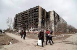 Ukrainian President Volodymyr Zelenskyy says Russian forces are blockading Ukraine’s largest cities to create a “humanitarian catastrophe” with the aim of persuading Ukrainians to cooperate with them. He says Russians are preventing supplies from reaching surrounded cities in the center and southeast of the country. Zelenskyy made the remarks in his nighttime video address to the nation. He filmed his talk outside in Kyiv, with the presidential office in the lamplight behind him. He again appealed to Russian President Vladimir Putin to hold talks with him directly.