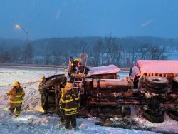 PITTSBURGH — Another blast of Winter has arrived in Washington County and the surrounding area. Periods of moderate to heavy snow took place into Saturday morning making travel hazardous. Accidents across the listening area had first responders busy through the morning hours. Steady snow tapered to snow showers on Saturday. Winds picked up through the day as well, bringing blowing and drifting snow back onto treated surfaces. Overall, some parts of Washington County saw 7-8 inches of snow locally from the system. (Photo: Claysville Volunteer Fire Department Facebook)