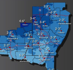 PITTSBURGH (WPXI) — Snowy weather returns to the area Sunday prompting a winter weather advisory for many counties around the region. Snow showers will break out Sunday morning and continue on and off much of the day. Most areas will see 1″ to 3″ of snow by Sunday evening with the better chance of up to 3″ from Beaver, Allegheny, Westmoreland counties and south where a Winter Weather Advisory has been issued from 7am Sunday to 7pm Sunday. Roads will be slick and snow-covered at times. Watch for untreated surfaces as temperatures stay in the 20s all day. The recent frigid weather means roads will be cold enough to stick immediately. (Graphic: National Weather Service Pittsburgh Facebook Page)