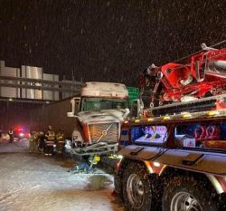 (AP) – A winter storm that had already blanketed parts of the South in snow moved into the Northeast, snarling air travel, crushing morning commutes and giving hundreds of school districts struggling to keep kids in the classroom during a wave of new coronavirus cases an excuse to shut down for a one-day respite. Many spots in New England had received more than a foot of snow by late Friday morning. Schools in Boston closed. Providence, Rhode Island, schools switched to distance learning. New York City kept the nation’s largest school system open. Officials were advising people to stay off the roads, and more than 2,400 flights have been scrubbed. Washington County picked up a few inches of snow, but it was enough to cause several accidents around the area, including one that closed the eastbound lanes of Interstate 70 Thursday night. Several fire departments were called out to the accident which involved a tractor trailer (pictured). There were no injuries reported. Several school districts also operated under two hour delays or went to remote learning. Greene County and points south picked up much more snow. (Photo: Charleroi Fire Department FB Page)