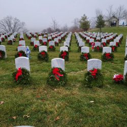 CECIL TWP. (WPXI) — Green wreaths with red bows lay against the white tombstones as local residents take part in Wreaths Across America this weekend. As they place the greenery at each of the 14,500 veterans graves at the National Cemetery of the Alleghenies, volunteers will say the deceased’s name. They will take a moment to pause and thank him or her for their service to this country. A brief ceremony was held to recognize each veteran in the cemetery, which encompasses 292 acres. It opened in 2008. The ceremony was on Facebook Live because of covid-19 concerns. Usually, this event is held on a Saturday in December and has a full in-person ceremony. This year, the event was spread over Friday, Saturday and Sunday. Most of the wreaths were laid by Friday evening this year.