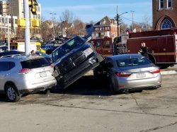 A mid morning accident at the intersection of Jefferson Avenue and Hall Avenue left one person injured. The accident occured at 9:15 AM when a pick up truck collided with a car and the truck ended up on its side atop the car. The accident damaged the control box for the traffic light. County 9-1-1 dispatchers stated that the accident scene was cleared and all police and fire personnel were gone before 12:00 PM. (photo credit Ken Westcott)