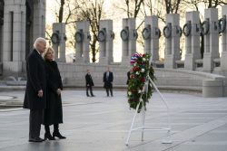 WASHINGTON (AP) – President Joe Biden and first lady Jill Biden have marked the 80th anniversary of the Japanese attack on Pearl Harbor with a visit to the World War II Memorial in Washington. The Dec. 7, 1941, attack on Pearl Harbor and other locations in Hawaii killed 2,403 service members and civilians and was a defining moment leading to U.S. entry into the war. Joe Biden touched a wreath at the memorial and saluted on Tuesday. The first lady laid a bouquet honoring her father, a Navy signalman in the war. In a White House proclamation last week recognizing National Pearl Harbor Remembrance Day, the president thanked “the Greatest Generation.”
