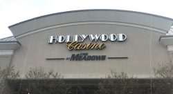 The Meadows Casino has taken the final step in its three year journey since being sold to Penn National Gaming in 2019. At a Friday morning unveiling of the new marquee, the casino is now officially named the Hollywood Casino at The Meadows. Vice President and General Manager Tony Frabbiele announced the name change and highlighted renovations that ran $25 million in investments. The Eatery by Fabio Vivani, The H Lounge and Embers Lounge by the racetrack are just a few upgrades that visitors will see. The casino will celebrate all weekend long with a “Pink Out” event and Family Fun night with Corgi Dog races, food trucks and entertainment. The Casino along with the Meadows Standardbred Owners Association will also have a check presentation to the American Cancer Society in honor of Breast Cancer Awareness Month. Saturday events include hourly lucky draws and merchandise giveaways, food trucks and music. The weekend will come to an end with fireworks at 7:15 pm and an 8:00 pm grand prize drawing for a brand new Mercedes Benz. The celebration will continue all month long with more giveaways and lucky draws.