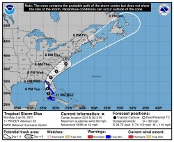 ST. PETERSBURG, Fla. (AP) – The National Hurricane Center says Tropical Storm Elsa is strengthening and could became a hurricane before making landfall along Florida’s north Gulf coast. It’s complicating the search effort at the collapsed condo in Surfside, and could be near hurricane strength before it makes landfall somewhere between Tampa Bay and the Big Bend. Forecasters also warn that it could push a storm surge of water into Tampa Bay neighborhoods. Florida Gov. Ron DeSantis has expanded a state of emergency to cover a dozen counties. Tampa International Airport shut-down at five p.m. on Tuesday.
