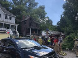MONESSEN, Pa. — Three firefighters were transported to local hospitals after a house fire on Park Way in Monessen caused the floor to give out. One was sent by helicopter to the UPMC Burn Clinic and the two others were ferried by ambulance to Mon Valley. There is no word as to what initially started the fire. 911 officials said that they were alerted to the scene just before 3 p.m. on Saturday. The Monessen fire chief said when firefighters got to Park Way, another person came up and shouted that someone was inside. Firefighters went in to try to rescue whoever might be in there, while other firefighters worked to put the fire out. The fire chief said that when first responders went into the house, they confirmed that there were signs that a squatter had taken over. They didn’t find anyone in the house but the fire chief said a Charleroi firefighter fell through the second floor onto the first floor and had to be life-flighted. Two other firefighters were treated for heat-related issues.