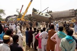 GHOTKI, Pakistan (AP) – Pakistani officials say the death toll from a collision of two trains in the country’s south has risen to 63 after rescuers pulled 12 more bodies from crumpled cars a day after the crash. Rescue work continued into Tuesday in Ghotki, a district in the southern Sindh province where an express train barreled into another that had derailed minutes earlier. The bodies of the killed passengers have been taken to their hometowns for burial. The scope of the collision and the high death toll have stunned Pakistan, even though train accidents are common in this country where successive governments have paid little attention to improving the poorly maintained railroad system.
