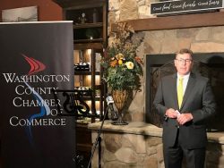 Washington County food service and hospitality businesses took center stage in Charleroi on Wednesday to accept first and second round grants from the Covid-19 Hospitality Industry Relief Program, better known as CHIRP. Governor Tom Wolf made $145 million available via a transfer from the commonwealth’s workers’ compensation fund to allow the Department of Community and Economic Development work with local officials on the distribution of those grants. DCED Secretary Dennis Davin (pictured) was on hand at the River House Café to deliver his remarks on the importance of the distribution of monies via grants and not loans. Commissioner Diana Irey-Vaughn stated that Washington County’s share of the program was $2.3 million and already $1.940 million has been distributed. Roughly $300,000 remains to be distributed. The press conference recognizing the grants drew state and local government officials and hospitality industry business owners to celebrate the program.
