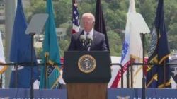 NEW LONDON, Conn. (AP) – President Joe Biden has delivered his first commencement address as commander-in-chief, praising new graduates at the Coast Guard Academy for excelling during the pandemic. He also stressed their vital role as the United States reasserts itself on the world stage. But Biden’s remarks in New London, Connecticut on Wednesday made no mention of several current global hotspots, including the ongoing conflict between Israel and the Palestinians. Hours earlier, Biden had issued a call for a cease-fire in the Mideast.