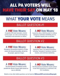 HARRISBURG, Pa. (AP) – Beyond the local races on ballots, Pennsylvania’s primary election will determine the future of a governor’s authority during disaster declarations. Voters statewide Tuesday will decide four separate ballot questions, including two on whether to give state lawmakers much more power over disaster declarations. Voters also must decide primaries for open seats on the three statewide appellate courts, including a three-way GOP primary for state Supreme Court. In four parts of Pennsylvania, there are contests for open seats in the state Legislature. If recent turnout patterns hold, fewer than one-fifth of Pennsylvania’s registered voters will determine the outcomes.
