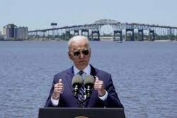 LAKE CHARLES, La. (AP) – With a badly aging bridge as his backdrop, President Joe Biden stood in reliably Republican Louisiana on Thursday to pressure GOP lawmakers to support his $2.3 trillion infrastructure plan. But he also expressed a willingness to compromise on the tax hikes on corporations he’s recommending to pay the cost. The president directly challenged the Republicans whose dogma has been that low taxes for corporations and the wealthy will fuel economic growth. But he declared he was willing to negotiate and dared them to do the same. (Photo: AP)