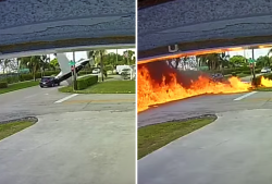PEMBROKE PINES, Fla. (AP) – Officials say a boy who was riding in a SUV with his mother was killed when a small plane struggling to return to a South Florida airport crashed into them on a residential street. The crash happened Monday afternoon in Pembroke Pines. Fire Chief Marcel Rodriguez says two people on the plane also died. The child’s mother was released from the hospital late Monday. Rodriguez says the Beechcraft Bonanza plane had just taken off from North Perry Airport in Pembroke Pines. Officials say the boy’s mother tried to free him from the car, which a neighbor said looked like it was cut in half. A Doorbell ring camera captured the entire tragedy on video.
