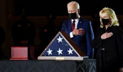 WASHINGTON (AP) – President Joe Biden and the first lady are among those who have paid their respects to slain Capitol Police Officer Brian Sicknick as he lay in honor in the U.S. Capitol. Sicknick’s colleagues and the lawmakers he protected are honoring him for his actions during the violent attack on Congress that cost him his life. The officer was injured Jan. 6 when a mob besieged the Capitol, dying the next day. Following a viewing period overnight for Capitol Police officers, lawmakers are set to to pay tribute at a ceremony Wednesday morning. Sicknick will be interred at Arlington National Cemetery.