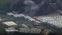 PHILADELPHIA (AP) — A fast-moving fire erupted in Philadelphia at a transit bus lot filled with dozens of decommissioned vehicles. The Thursday morning blaze did not cause any injuries, but it burned for nearly two hours before it was declared under control. Authorities say 40 Southeastern Pennsylvania Transportation Authority buses were engulfed in flames. The cause of the blaze remains under investigation. The city’s Public Health Department inspectors collected samples to assess air quality and the potential for any threat. Citing an abundance of caution, the agency warned nearby residents to stay indoors if possible.