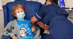 LONDON (AP) – British health authorities have rolled out the first doses of a widely tested and independently reviewed COVID-19 vaccine, starting a global immunization program that is expected to gain momentum as more serums win approval. The first shot was given Tuesday to Margaret Keenan (pictured), who turns 91 next week, at one of several hospitals around the country that are handling the initial phase of the program on what has been dubbed “V-Day.” Public health officials have asked the public to be patient because only those who are most at risk from COVID-19 will be vaccinated in the early stages. Most will have to wait until next year before there is enough vaccine to expand the program.