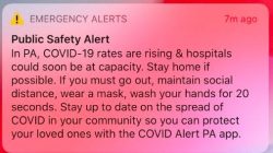 PITTSBURGH, Pa (WPXI) — Did your phone blare with a message about COVID-19 Wednesday evening? Gov. Wolf’s office announced the state will start using the national Wireless Emergency Alert system to put out messages about the pandemic. According to a news release, WEA is a national public safety system that allows people who own a cellphone to receive targeted, text-like messages. The system is currently used to issue alerts to your phone for things like Amber Alerts or severe weather warnings. The Federal Communications Commission’s Public Safety and Homeland Security Bureau allows the state to use the system as a COVID-19 communications tool. State officials said the plan is target specific regions of the state for future messages.