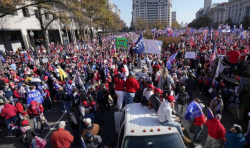 WASHINGTON (AP) — Several thousand supporters of President Donald Trump in Washington protested election results and then hailed Trump’s passing motorcade before nighttime clashes with counterdemonstrators sparked fistfights, at least one stabbing and at least 20 arrests. Several other cities on Saturday also saw gatherings of Trump supporters unwilling to accept Democrat Joe Biden’s Electoral College and popular vote victory as legitimate. Cries of “Stop the Steal” and “Count Every Vote” continued in spite of a lack of evidence of voter fraud or other problems that could reverse the result. After night fell, the relatively peaceful demonstrations in Washington turned from tense to violent. Videos posted on social media showed fistfights, projectiles and clubs as Trump supporters clashed with those demanding they take their MAGA hats and banners and leave. The tensions extended to Sunday morning. A variety of charges, including assault and weapons possession, were filed against those arrested, officials said. Two police officers were injured and several firearms were recovered by police.