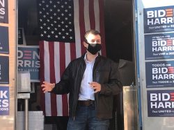 loss, racism, health care, and pride of being an American. Nearly 100 people turned out on a sunny afternoon. Several were seen signing up to volunteer to knock on doors and perform other campaign-related tasks.