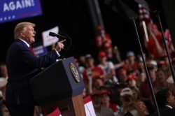 LAS VEGAS (AP) – President Donald Trump openly defied state regulations and his own administration’s pandemic guidelines as he gathered thousands of supporters inside a suburban Las Vegas warehouse Sunday night. Trump soaked up the raucous cheers from the largely mask-free crowd but made no mention of the nearly 200,000 U.S. deaths and ongoing infections from the novel coronavirus. Not since a rally in Tulsa, Oklahoma, that was blamed for a surge of infections has Trump gathered so many indoors. Nevada Gov. Steve Sisolak, a Democrat, said Trump was “taking reckless and selfish actions” that endangered lives. Those in the stands directly behind Trump and likely to be captured on TV were ordered to wear face coverings.