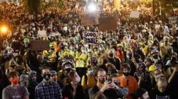 PORTLAND, Ore. (AP) – A peaceful protest morphed into an intense early morning confrontation between demonstrators and law enforcement in Oregon’s largest city. U.S. agents fired what appeared to be tear gas, flash bangs and pepper balls early Monday to clear a mass of protesters outside the federal courthouse in Portland. Some protesters had climbed over the fence surrounding the courthouse. Others shot fireworks, banged on the fence and projected lights on the building. The city has seen nightly protests for two months since the death of George Floyd. Earlier Sunday, Portland police say a person was shot at a park near where the protests take place. A bag was also found containing loaded rifle magazines and Molotov cocktails.