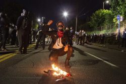 PORTLAND, Ore. (AP) – The mayor of Portland is demanding that President Donald Trump remove militarized federal agents he deployed to the city after some detained people on streets distant from federal property they were sent to protect. Democratic Gov. Kate Brown said Trump is looking for a confrontation in the hopes of winning political points elsewhere. The protests following the police killing of George Floyd in Minneapolis have often devolved into violent clashes between smaller groups and the police. The unrest has caused divisions in a city that prides itself on its activism and progressive reputation.