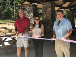 Washington County Commissioners dedicated a new Shelter 10 in Mingo Creek County Park. Commissioners were proud to display the newly rebuilt shelter and several other attractions throughout the park on Wednesday afternoon. A $1.4 million dollar investment into the park not only brought about the shelter renovation, but the refurbishing of the Henry House and the rebuilding of the Sumney Log House. A 9 hole par 3 disc golf course was built for adult exercise, as was a new playground on the Maintenance Hill play area. The new playground is built to allow children of all abilities the option to play. Ramp access and wheel chair accessible components highlight the new playground. Commissioner Chairwoman Diana Irey-Vaughn is excited to bring the park renovations to citizens to enjoy for years to come. Commissioner Larry Maggi calls the park a jewel in the county. And Commissioner Nick Sherman is particularly pleased with the playground. The park was paid for by funds generated by a natural gas lease signed with Range Resources.