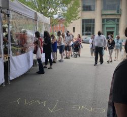 The Main Street Farmer’s Market in downtown Washington opened for the season on Thursday. The market, which began its 17th season, is held at the community pavilion on South Main Street across from the Observer Reporter building. It will be held on Thursdays from 3:00 to 6:00 p.m. through October. Market organizers say they found it necessary to be proactive in keeping with the CDC guidelines that have been instituted for the safety of vendors and community members so there were some changes that visitors noticed. Organizers say the market this year truly exemplifies the statement that “We are ALL in this Together.” They say their goal is to see farmers and local small businesses thrive along with offering the community access to the freshest local products and welcoming SNAP (Supplemental Nutrition Assistance Program) customers to shop with added savings. Despite fewer vendors and no live entertainment, the first socially-distanced market of the year saw a decent crowd. Face coverings were evident and entrances and exits were well marked.