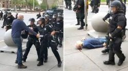 BUFFALO, N.Y. (AP) – Prosecutors are investigating after a video captured police in Buffalo, New York, shoving a 75-year-old man who then fell and cracked his head. The WBFO recording of Thursday night’s encounter quickly gained steam online and sparked outrage. Two police officers have been suspended without pay. The video shows a man identified as Martin Gugino approaching a line of officers clearing demonstrators from Niagara Square around curfew time. The man falls backward and hits his head on the pavement. Blood leaks out as officers walk past. The mayor says the man is in serious condition.