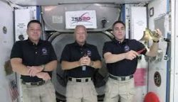 CAPE CANAVERAL, Fla. (AP) – The astronauts launched into orbit by SpaceX have joined in the ringing of the opening bell for Nasdaq. NASA astronauts Doug Hurley and Bob Behnken took part in the ceremony from the International Space Station, three days after their historic launch on a rocket built and owned by Elon Musk’s company. They floated alongside space station commander Chris Cassidy as he rang a ship’s bell to open trading on the Nasdaq Stock Exchange.