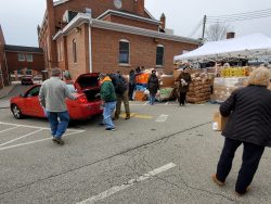 Many families in need left the Canonsburg Food Bank grateful for the opportunity to pick up supplies during the COVID-19 pandemic. The Food Bank’s “Truck to Trunk” event took place at the Canonsburg United Presbyterian Church on West Pike Street Friday morning. Cars lined up as early as 3:30 a.m. in the church parking lot, and the initial line for food extended over a mile down Pike Street. Canonsburg Mayor David Rhome said the event ran very smoothly as two lines branched off to volunteers who would place the food and other items into the trunks of the people who attended. Volunteers say they had a major amount of “walk-ins” who were not already registered with the Food Bank, who was also fulfilling the needs of the Peters Township and Finleyville Pantries, which are closed at this time. In total, Mayor Rhome says they expected to have served 600-700 families in the area throughout the morning.