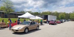 Over 500 families in the Mon Valley have fresh food thanks to a large “Truck to Trunk” pull-up food drive that took place Friday afternoon at the Mon Valley Career and Technology Center in Speers. According to event organizer, Michele Schwerha, volunteers from Fourth Street Foods, Mon Valley CTC, Charleroi Fire & Regional Police, and Charleroi Council loaded people’s trunks with boxes of fresh meats, vegetables, pasta, milk, frozen goods, cleaning supplies, and homemade masks. The line of cars stretched from the parking lot all the way to Interstate 70. Mon Valley CTC Director, Neil Henehan, said the event seemed to bring the Mon Valley together, something he was proud of his students and staff for helping to accomplish.